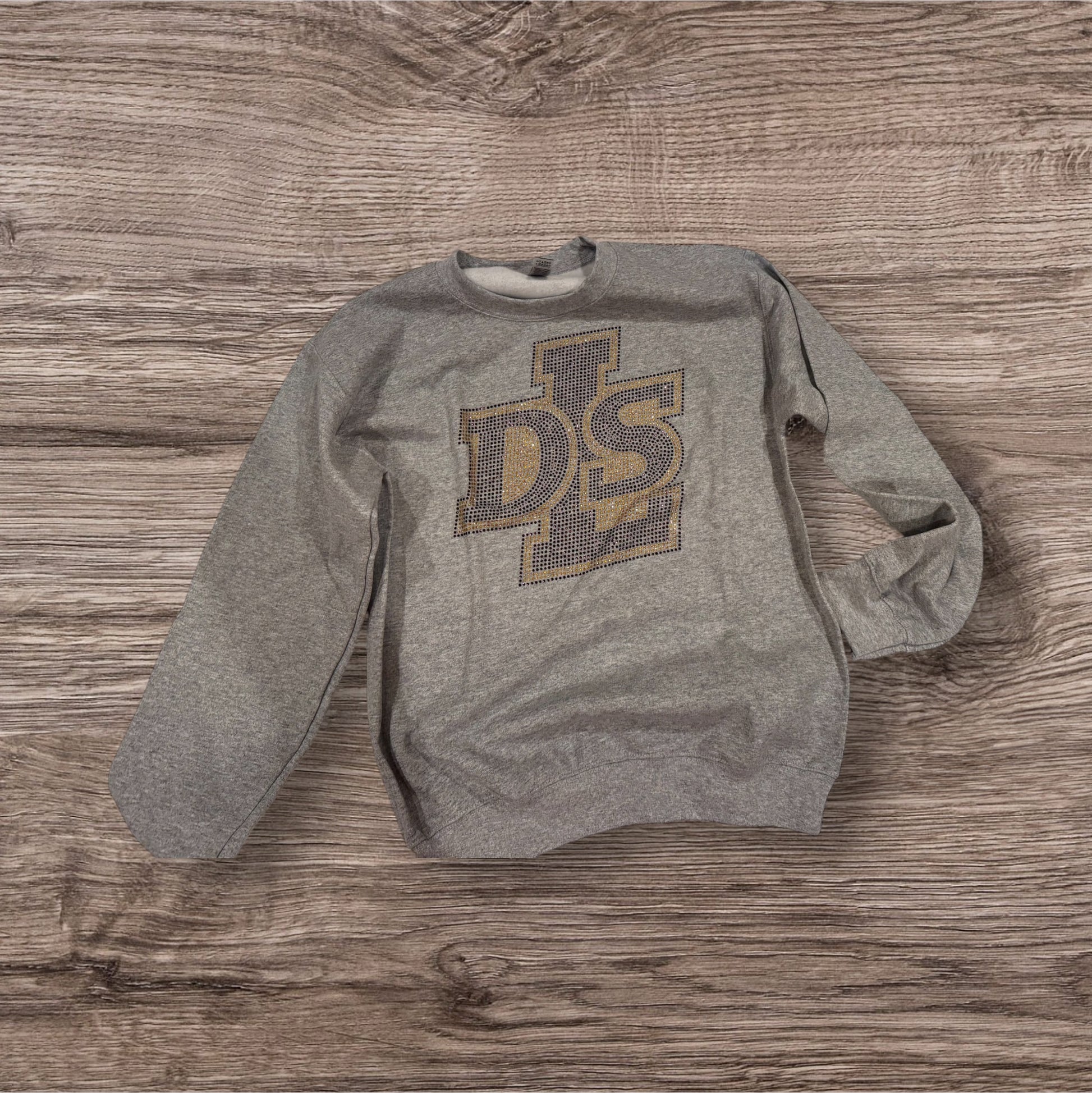 Gildan unisex crewneck in light grey with Large DLS blinged emblem